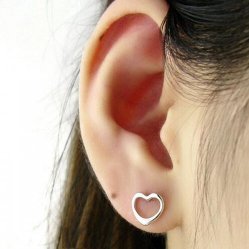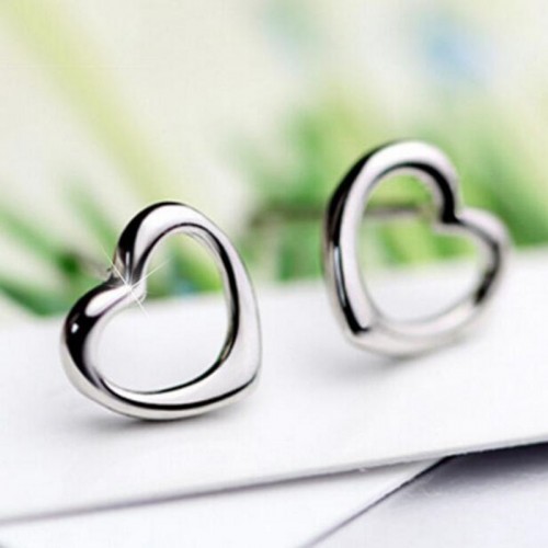 실버 광택 하트 귀걸이
