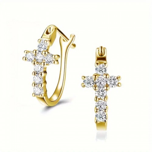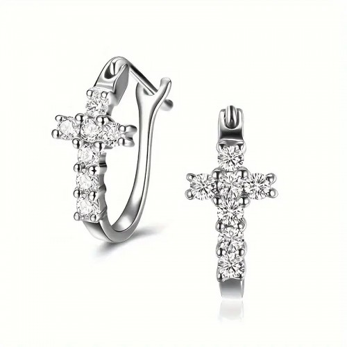 십자가 후프 지르콘 귀걸이