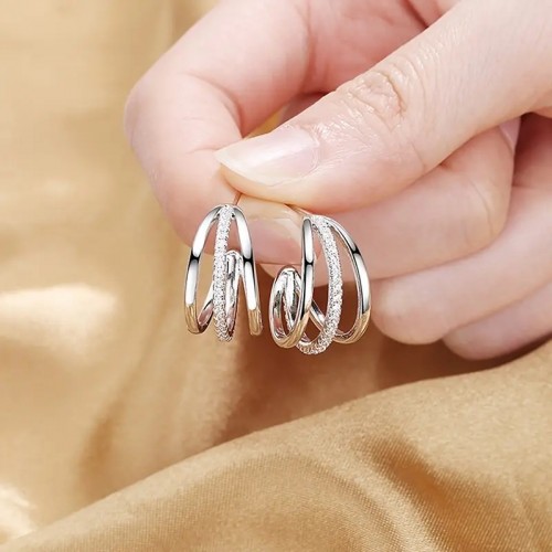 멀티 레이어 후프 지르콘 귀걸이