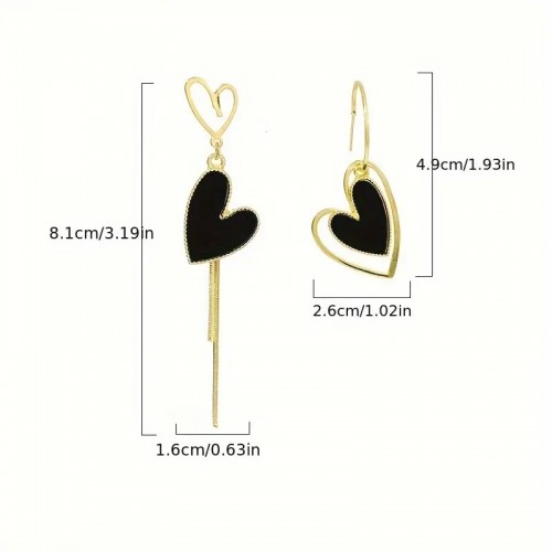 블랙 하트 롱 타셀 귀걸이