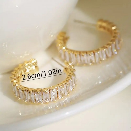 골든 스파클링 C-쉐이프 지르콘 후프 귀걸이