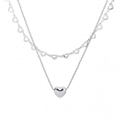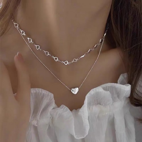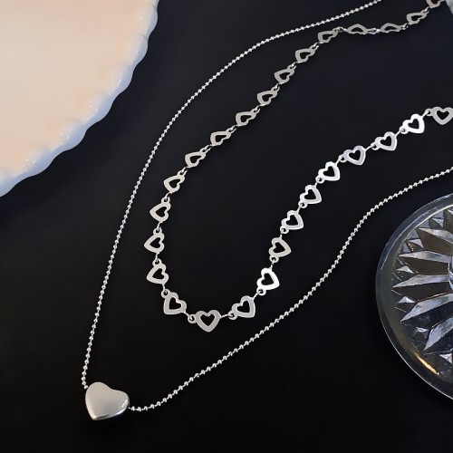 티타늄 스틸 더블 레이어 하트 쇄골 목걸이